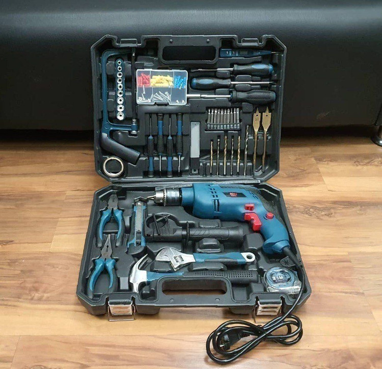 دارای کلیه ابزارهای مصرفی شامل؛ آچار فرانسه سایز۸، انبردست، دمباریک، چکش، بکس تک سایز ۴ تا ۱۳، متر ۳ متری، پیچ گوشتی دوسو و چهارسو سایز بزرگ، پیچ گوشتی نوک خور، مته آهن سایز ۵ و ۶ و ۸، مته دیوار سایز ۵ ،۶ و ۸، مته برگی سایز ۱۲ و ۱۶، ۹ عدد نوک پیچ گوشتی، تبدیل نوک پیچ گوشتی به بکس چسب برق، کاتر، فازمتر دیجیتال، آچار سه نظام، ۵ عدد تیغ کاتر، دو سایز پیچ گوشتی موبایلی دو سو و دو سایز پیچ گوشتی موبایلی چهارسو، کمان اره چوب و فلز، مجموعه سایزبندی پیچ و رولپلاک