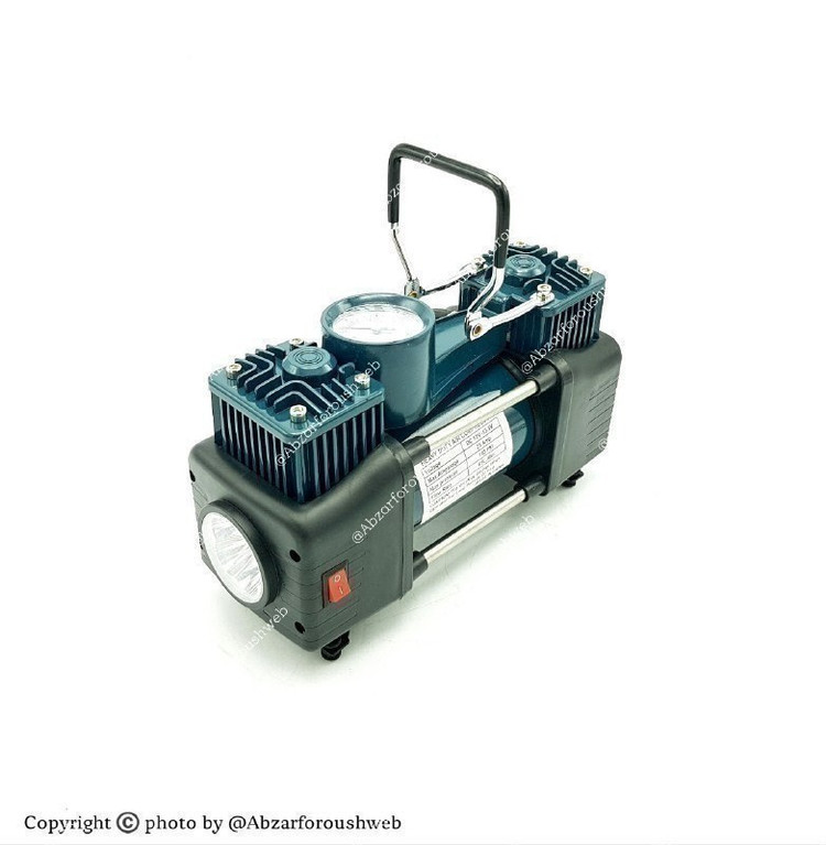 دوسیلندر.دارای نشانگر میزان باد.دارای چراغ قوهLED.قابل استفاده حتی خودروهای شاسی بلند بدون نیاز با جک.دارای وسایل کاربردی:شلنگ فنری ۵متر،دمباریک،کاتر،انبرک های پنچرگیری،پیچگوشتی ۲سو و ۴سوتبدیل فندکی به سر باتری خودرو،۳عددسری جهت بادزدن توپ،دوچرخه،قایق بادی : فشار خروجی تا۱۵۰Psi