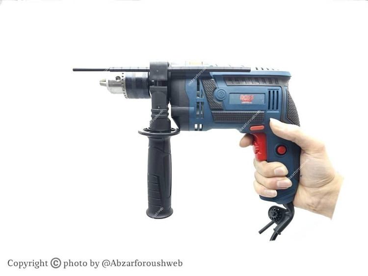 ۱۲۰۰ وات. قابلیت چکشی. سیم پیچ تمام مس. سه نظام سایز۱۳. چپگرد و راستگرد. دور متغیر ۰_۳۰۰۰دور بر دقیقه: ۱۲۰۰وات