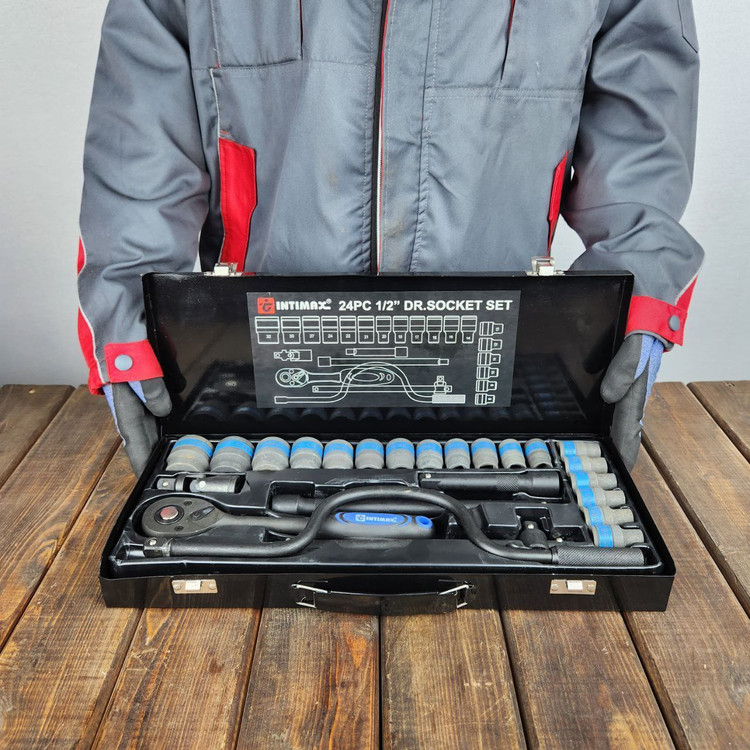 دارای ۱۸عدد بکس از سایز۸الی۳۲میلیمتر. ۱عددآچار هندلی باکیفیت. ۱لقلقی ۱/۲اینچ. یک کشویی بلند. دوعدد بکس کوتاه وبلند. دارای جعبه فلزی.: ۲۴