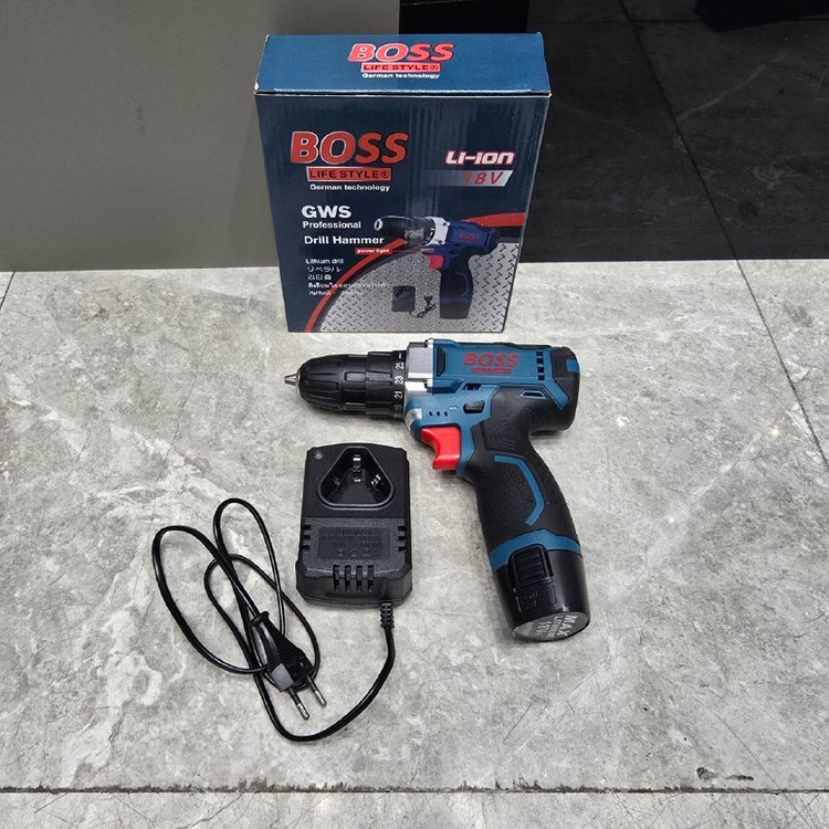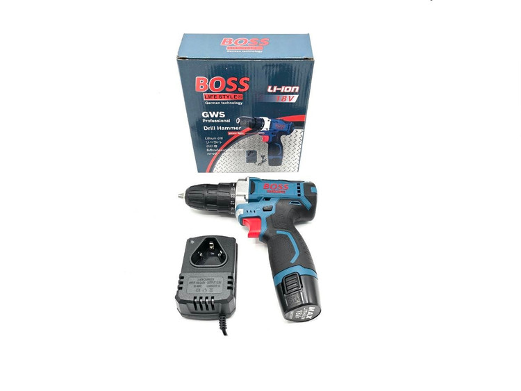 پایه شارژر فست. یک عدد باتری ۱۸ولت. گیربکس دو دور. قابلیت کنترل سرعت فشاری. چراغ قوه بزرگ روی بدنه دستگاه جهت محیط های کم نور. موتور تمام مس. به همراه شارژر پایه دار: ۱۸ولت