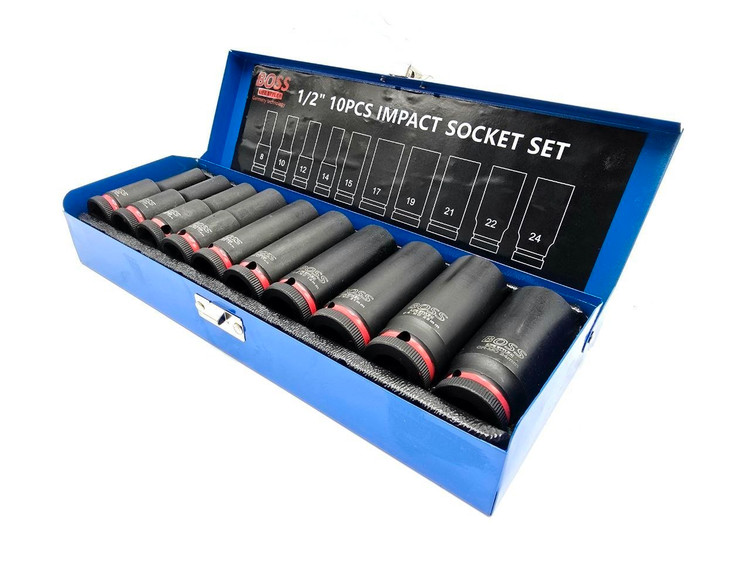 مشاهده محصولات مرتبطجهت کار مکانیکی و سنگین. قابلیت استفاده با بکس بادی. فولاد کرم^مولیبدن. درایو۱/۲. دارای۹عدد بکس بلند فشارقوی سایزهای ۸.۱۰.۱۲.۱۴.۱۵.۱۷.۱۹.۲۱.۲۲.۲۴۱۰عدد