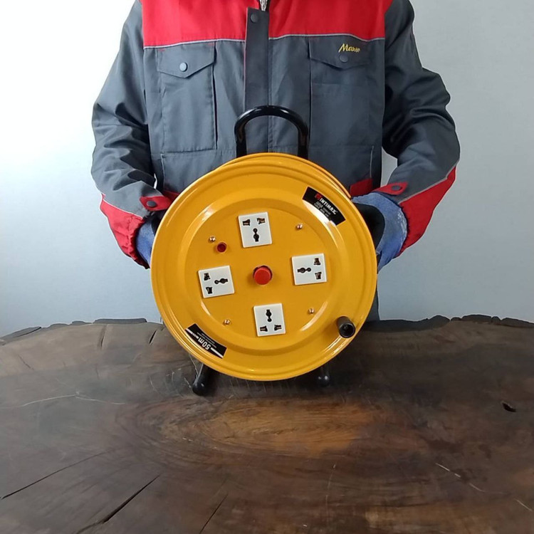 دارای ۵۰متر کابل باکیفیت مس. دارای۴پریز باکیفیت. دارای کلید قطع کن جریان به صورت مجزا. دارای دسته فلزی روی بدنه جهت دارای محافظ جریانحمل آسان. مناسب جهت مصارف صنعتی.خانگی و نیمه صنعتی: ۵۰